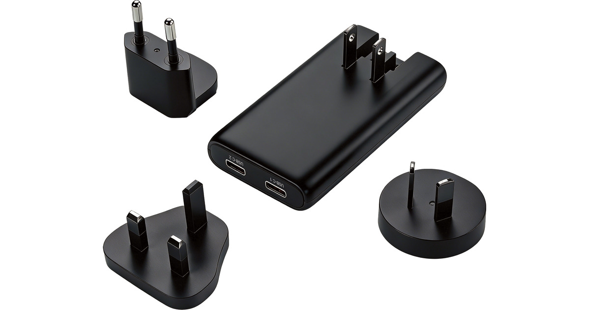 Sandberg 4in1 TravelCharger 2xUSB-C 65W é um carregador de viagem poderoso e ultra-fino com duas portas USB-C PD. Ele fornece até 65W, então até laptops podem ser carregados rapidamente, e quando ambas as portas estão em uso, a energia é distribuída de forma inteligente (45W + 12W). O carregador vem com um plugue dobrável dos EUA, que também se encaixa em grande parte da Ásia, e inclui adaptadores para a UE, Reino Unido e Austrália, então você está pronto para a maior parte do mundo. O revestimento é à prova de fogo e robusto, perfeito para viagens.